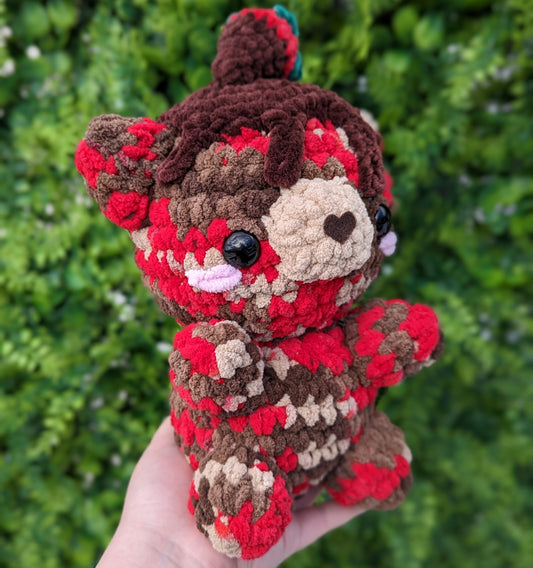 Chocolate Covered Strawberry Teddy Bear Crochet Plushie