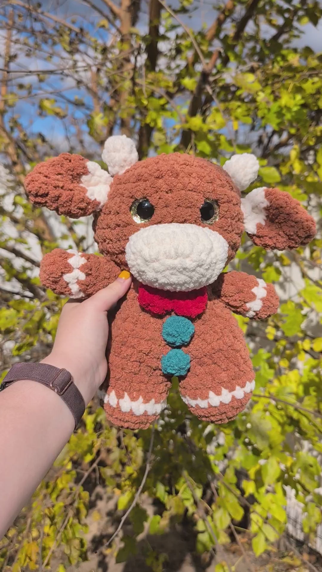 DelaraesCreations, Delaraes Creations, crochet plushie, amigurumi plush, stuffed animal, stuffed toy, stuffie, crochet cow, amigurumi cow, baby cow plushie, stuffed cow, christmas pattern, christmas crochet, xmas, gingerbread