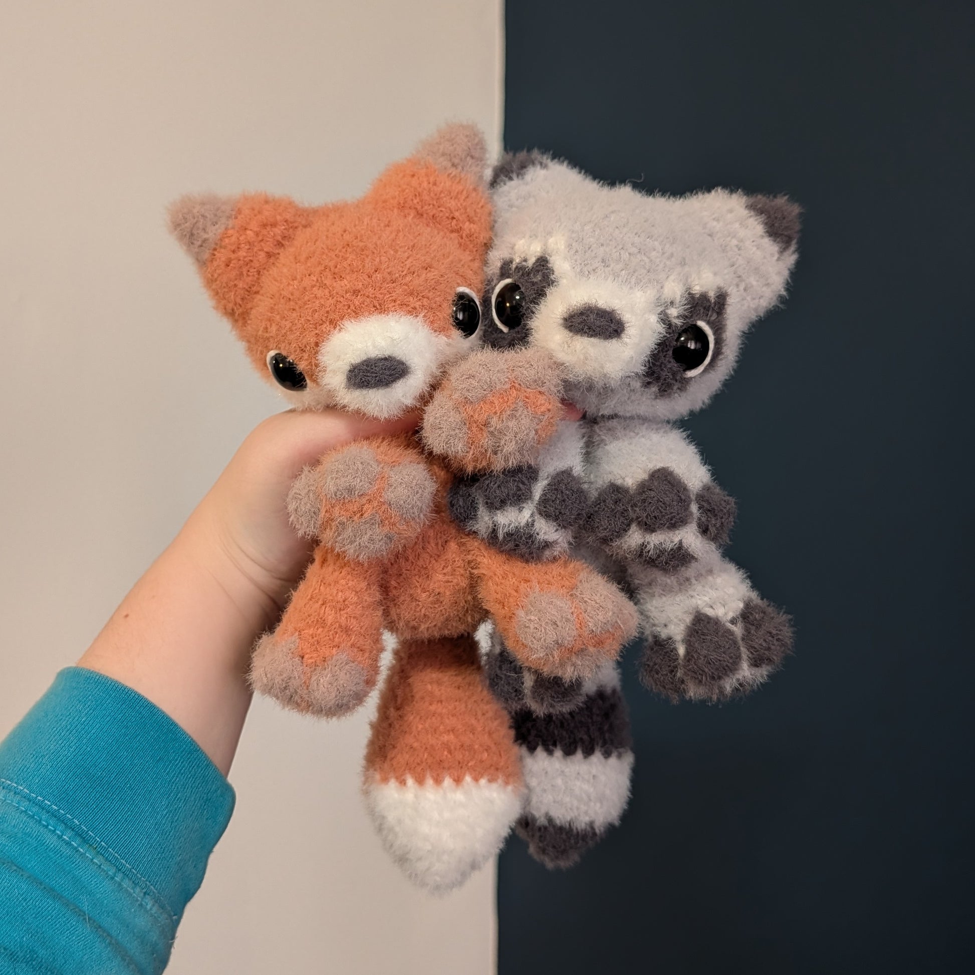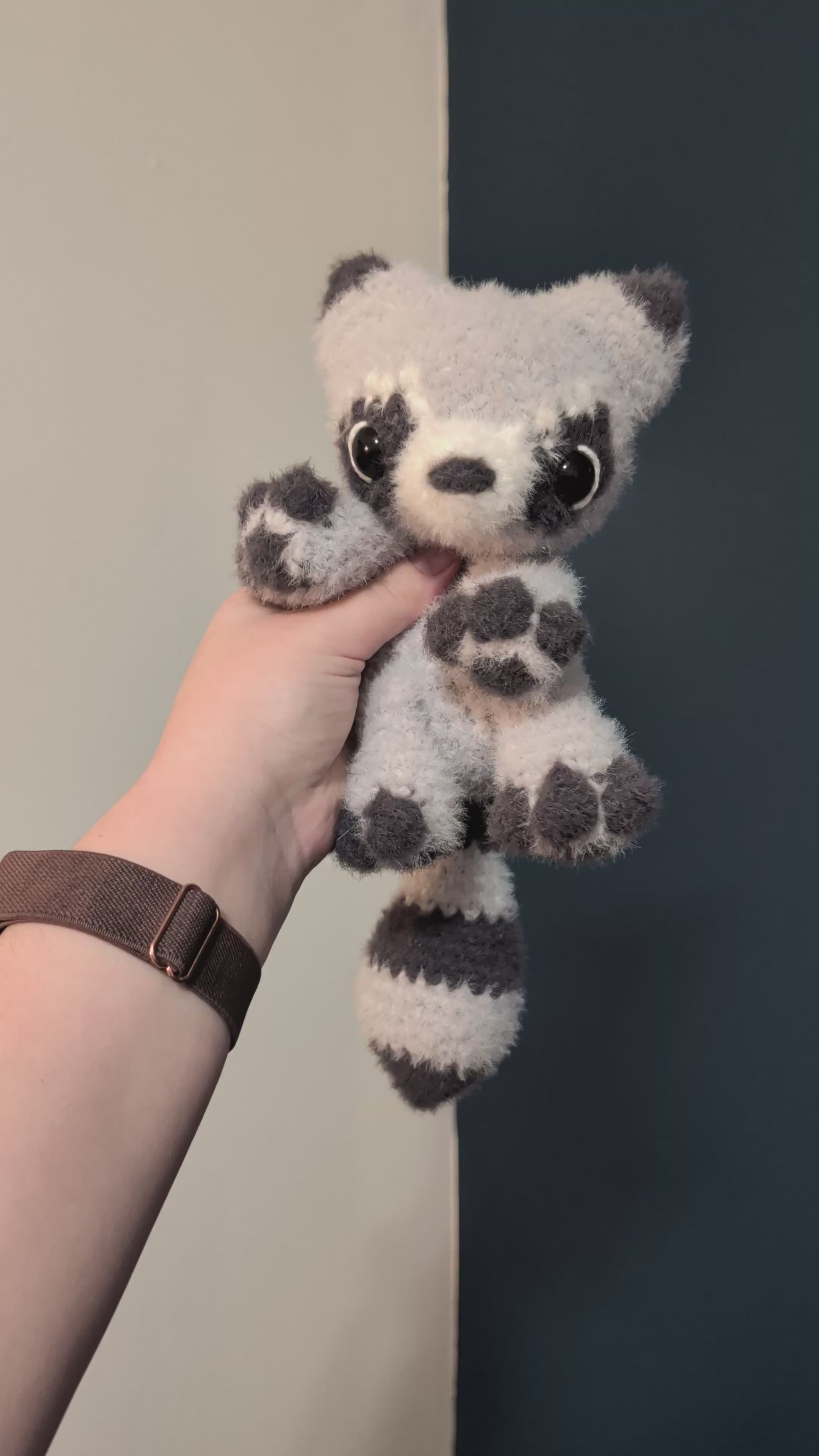 DelaraesCreations, Delaraes Creations, crochet plushie, amigurumi plush, stuffed animal, stuffed toy, stuffie, crochet raccoon, amigurumi raccoon, raccoon plushie, stuffed raccoon, raccoon pattern, trash panda, critter, weighted, fluffy, fuzzy
